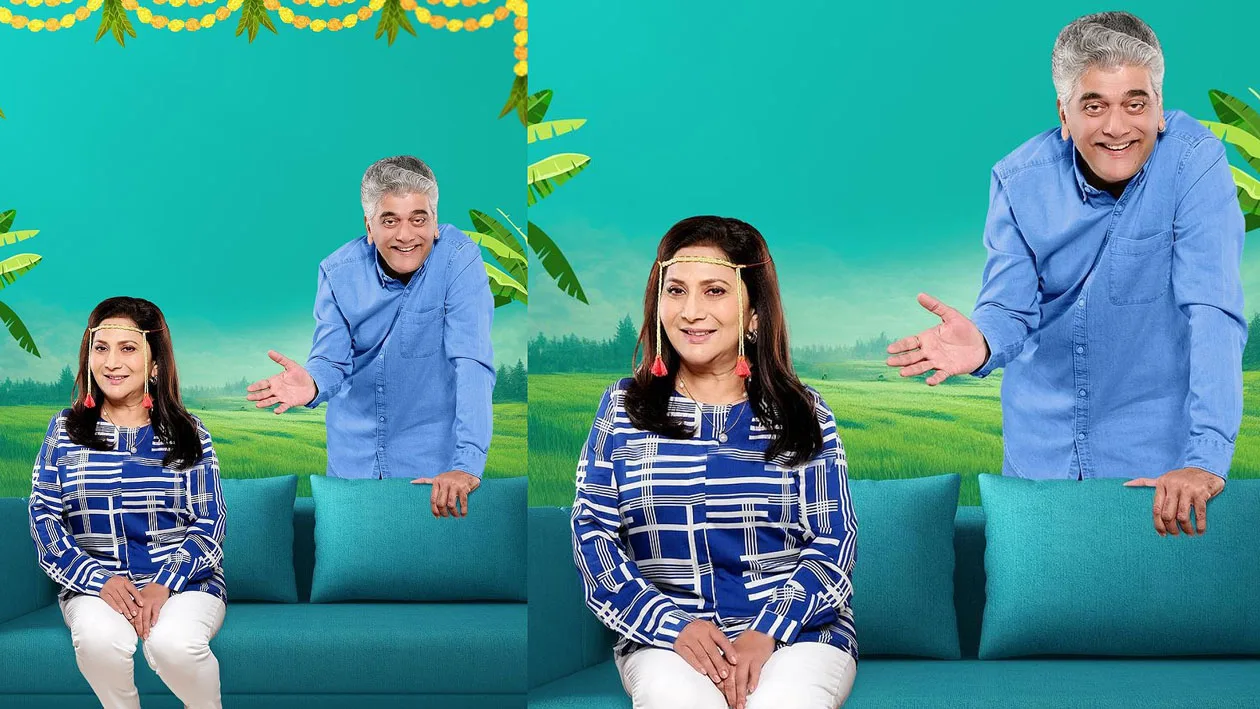 निवेदिता सराफ डोक्यावर मुंडावळ्या घालून सोफ्यावर बसलेली, चेहऱ्यावर मिश्किल शांतता; तर त्यांच्या मागे उभे असलेले गिरीश ओक काहीतरी हसत हसत सांगण्याच्या तयारीत! हे दृश्य पाहून लगेचच लक्षात येतं की हे पारंपरिक जोडपं नसलं तरी, त्यांचं नातं मात्र खूप खास आहे.