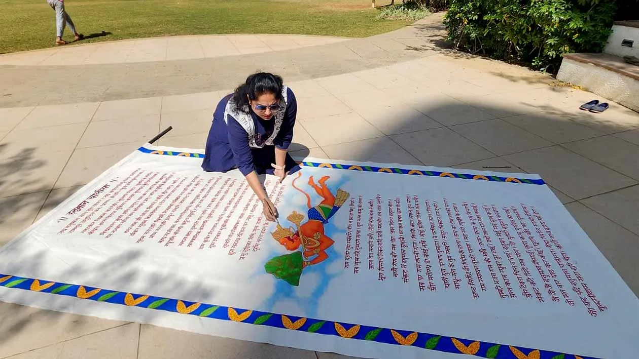 सुलेखनकार पूजा निलेश यांनी लिहिले ५ बाय १० फूट कॅनव्हास वर हनुमान चालिसा स्तोत्राचे हस्तलिखित...
