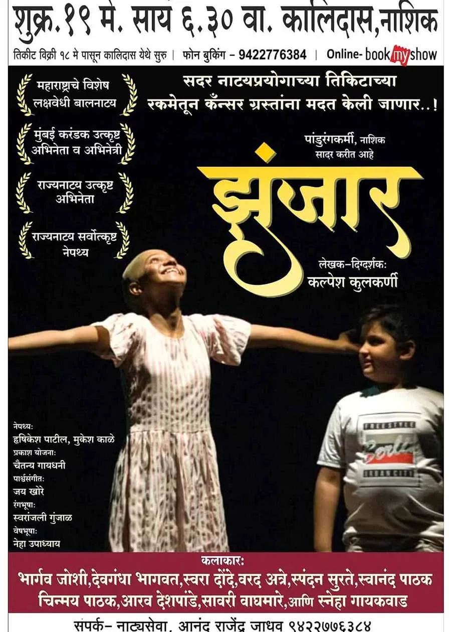 नाशिक,दि.१८ मे २०२३ – उद्या दिनांक १९ मे रोजी कालिदास कलामंदिर येथे संध्याकाळी ६.३० वाजता झुंजार या बालनाट्याचा प्रयोग होणार आहे. कॅन्सर हा या नाटकाचा विषय असून या नाटकातून जमा होणारा संपूर्ण निधी हा कॅन्सर रुग्णांच्या उपचारासाठी दिला जाणार आहे.कॅन्सर हा आजार आपल्या कुटुंबात, ओळखीत कुणालाही होऊ शकतो. प्रत्यक्ष / अप्रत्यक्ष या रोगाशी संबंध येत असल्याने कॅन्सर या आजाराबाबत असणारी भीती कमी व्हावी, मनोबल उंचावले जावे हा या प्रयोगामागचा हेतू आहे. नाटकाचा विषय जरी कॅन्सर असला तरी तो रडकथेसारखा न मांडता मनोरंजक पद्धतीने आणि प्रेरणादायी ठरेल या स्वरूपात मांडला गेल्याचे “झुंजार”चे लेखक/ दिग्दर्शक कल्पेश कुलकर्णी यांनी सांगितले.