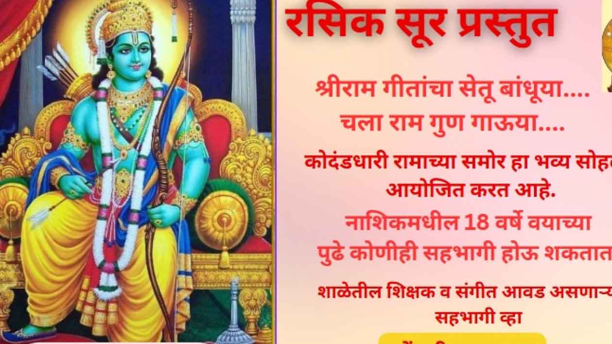 नाशिक ,दि, २४ जानेवारी २०२६ – Cultural Events in Nashik “रामो राजमणि: सदा विजयते” या दिव्य घोषाने नाशिक नगरी पुन्हा एकदा भक्तिरसात न्हाऊन निघणार आहे. अयोध्या ही प्रभू श्रीरामांची जन्मभूमी, तर नाशिक ही त्यांची तपोभूमी मानली जाते. अशा पुण्यपावन नगरीत श्रीरामभक्तांसाठी एक ऐतिहासिक आणि अभूतपूर्व धार्मिक-सांस्कृतिक सोहळा आयोजित करण्यात आला आहे.नाशिकमधील ‘रसिक सूर’ या भक्ती-संगीत चळवळीच्या माध्यमातून भव्य श्री राम गीत गायन सेवा येत्या रविवार, दिनांक २२ मार्च २०२६ रोजी आयोजित करण्यात आली आहे.