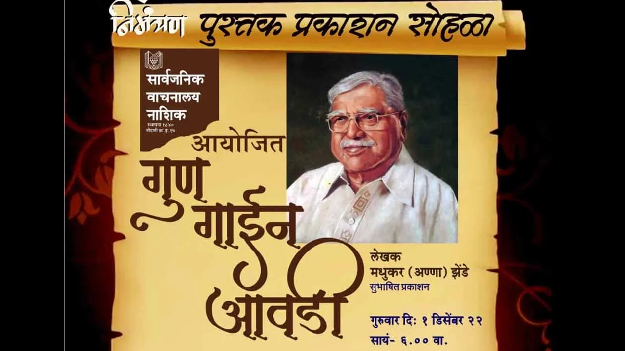 नाशिक दि. १ डिसेंबर २०२२ – सार्वजनिक वाचनालय नाशिकच्या वतीने सावानाचे माजी अध्यक्ष मधुकर (अण्णा) झेंडे यांचे स्वलिखित “गुण गाईन आवडी” या पुस्तकाचा प्रकाशन समारंभ आज गुरुवार दि. १ डिसेंबर, २०२२ रोजी सायं. ६.०० वा. परशुराम साईखेडकर नाट्यमंदिर येथे संपन्न होत आहे.