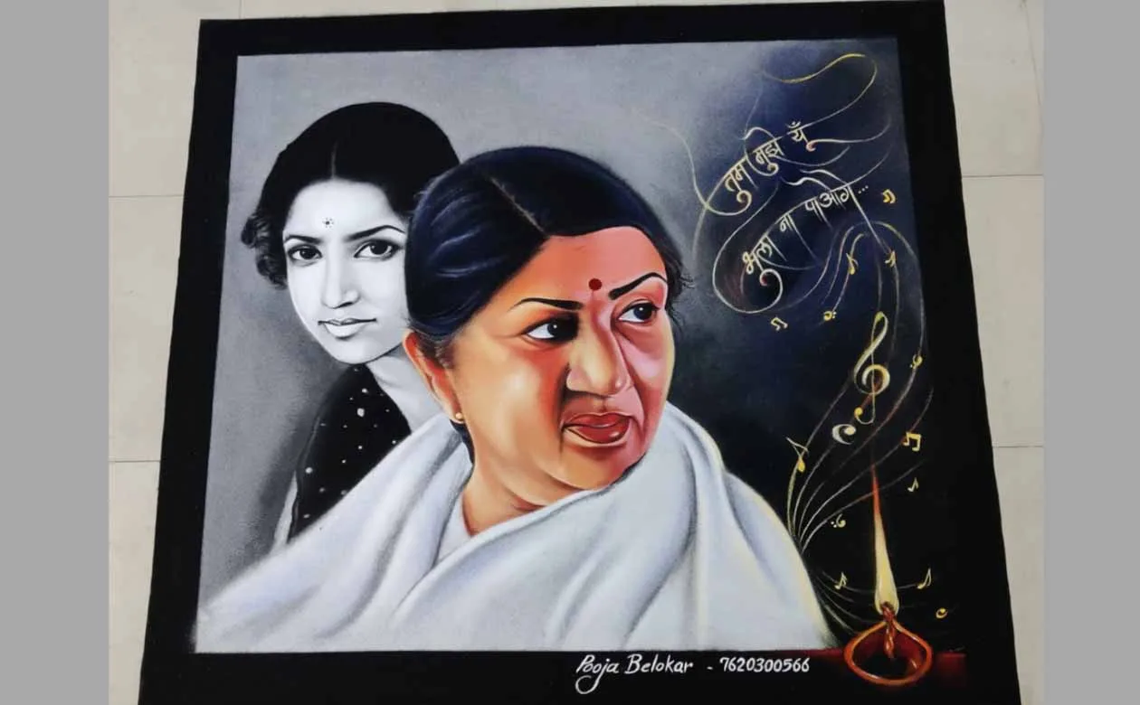 नाशिक – लतादीदींच्या जाण्याने सर्वत्र शोक पसरला आहे,लतादीदींबद्दल भावना व्यक्त करत नाशिकच्या पूजा बेलोकर यांनी रांगोळीच्या माध्यमातून ५ X ५ फुटांचे पोर्टेट साकारून अनोखी श्रद्धांजली अर्पण केली आहे.