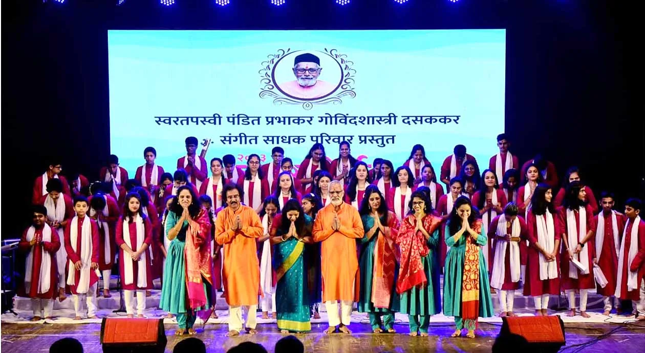 नाशिक,दि.७ ऑक्टोबर २०२३ – वाद्यांचा झंकार, सुमधूर सुरांचा बहार आणि टाळ्यांच्या कडकडाटासह कालिदास कलामंदिर गेले दोन दिवस संगीतमय झाले होते.निमित्त होते,स्वरतपस्वी पंडित प्रभाकर गोविंदशास्त्री दसककर संगीत साधक परिवार प्रस्तुत स्वरतीर्थ २०२३ या कार्यक्रमाचे. सप्त स्वरांची अनुभूती घेत, तालावर डोलत दसककर संगीत परिवारातील सुमारे २०० विद्यार्थ्यांनी दसककर संगीत परिवाराचे गुरू स्वरतपस्वी पंडित प्रभाकर गोविंदशास्त्री दसककर यांच्या स्मृतीस व सरस्वती चरणी आपली संगीतसेवा अर्पण केली.