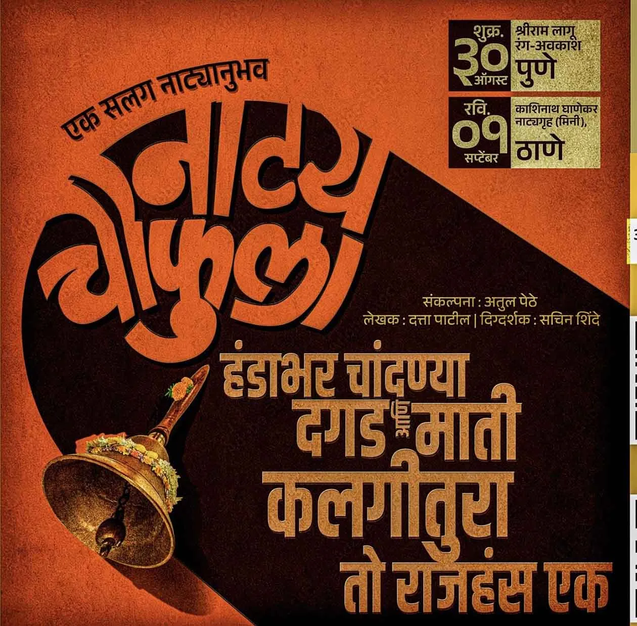 नाशिक,दि,२९ ऑगस्ट २०२४- प्रायोगिक रंगभूमीचा परीघ गेल्या दशकभरात मुंबई-पुण्याबाहेर विस्तारल्याचा प्रत्यय देणारी नाशिकच्या दत्ता पाटील या वर्तमान पिढीतल्या नाटककाराने लिहिलेल्या व प्रयोगशील रंगकर्मी सचिन शिंदे यांनी दिग्दर्शित केलेल्या हंडाभर चांदण्या, दगड आणि माती, कलगीतुरा, तो राजहंस एक या गाजलेल्या महत्वाच्या चार नाटकांचा ज्येष्ठ रंगकर्मी, दिग्दर्शक व अभिनेते अतुल पेठे यांच्या संकल्पनेतून एकाच दिवसात सलग प्रयोगांचा अनोखा महोत्सव ‘नाट्यचौफुला’ या नावाने पुण्यात आणि ठाण्यात होत आहे.