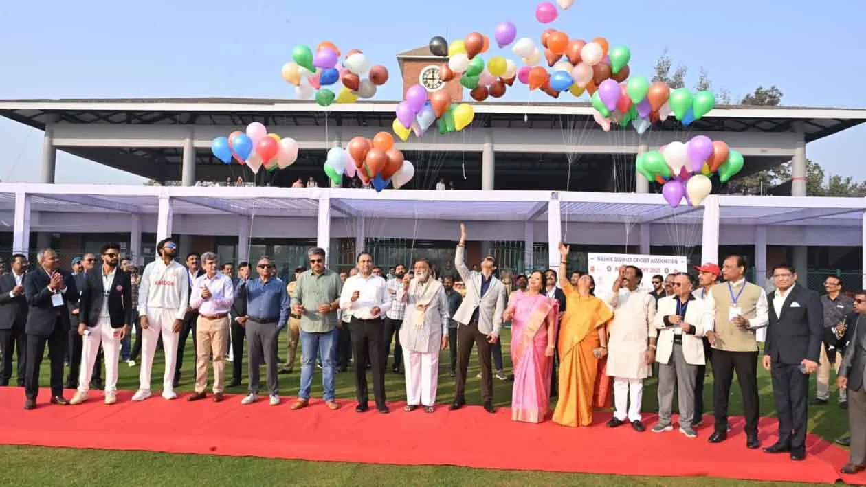 नाशिक,दि,२३ जानेवारी २०२५ –भारतीय क्रिकेट नियामक मंडळ – बीसीसीआय – तर्फे सुरु झालेल्या रणजी सामन्याचे सकाळी छोट्याशा शानदार समारंभात मान्यवरांच्या हस्ते आकाशात विविध रंगी फुगे सोडून सामन्याचे उद्घाटन करण्यात आले. याप्रसंगी महाराष्ट्र क्रिकेट असोसिएशनचे अध्यक्ष रोहित पवार, सेक्रेटरी कमलेश पिसाळ,सी इ ओ अजिंक्य जोशी, पदाधिकारी अतुल जैन , विभागीय आयुक्त प्रवीण गेडाम , जिल्हाधिकारी जलज शर्मा , खासदार राजभाऊ वाजे , आमदार देवयानी फरांदे , सीमाताई हिरे व राहुल ढिकले आदी मान्यवर उपस्थित होते . आमदार देवयानी फरांदे यांनी महाराष्ट्र संघाला मराठीतून तर बडोदा संघाला टाळ्यांच्या गजरात खास गुजराथीतून शुभेच्छा दिल्या. यावेळी नाशिक जिल्हा क्रिकेट असोसिएशनचे माजी चेअरमन विलास भाऊ लोणारी , विद्यमान चेअरमन धनपाल ( विनोद ) शहा, सहसचिव योगेश मुन्ना हिरे व चंद्रशेखर दंदणे, सेक्रेटरी समीर रकटे , खजिनदार हेमंत देशपांडे, संघटनेचे पदाधिकारी राघवेंद्र जोशी, निखिल टिपरी , शिवाजी उगले, बाळासाहेब मंडलिक , महेश मालवी, हेतल पटेल असे आजी व माजी कार्यकारिणी सदस्य तसेच तीनहि निवड समिति सदस्य सतीश गायकवाड, तरुण गुप्ता व फय्याज गंजीफ्रॉकवाला उपस्थित होते.