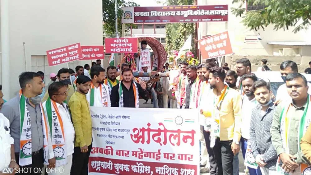 यावेळी बोलतांना युवक शहराध्यक्ष अंबादास खैरे म्हणाले की, गेल्या पंधरा दिवसात सातत्याने पेट्रोल डीझेलची दरवाढ कायम असून नाशिकमध्ये आज पेट्रोलचा ११२.४६ तर डीझेल १०१.६५ रुपयांवर पोहचले आहे. पेट्रोल डीझेलच्या दरवाढीचा परिणाम शेतकरी व सर्वसामान्य नागरिकांना मोठ्या प्रमाणात परिणाम होत आहे. सर्वसामान्य नागरिकाच्या कुटुंबाचे बजेट यामुळे संपूर्णपणे कोलमडून गेलेले आहे. याबाबत सातत्याने आम्ही केंद्र सरकारकडे याबाबत मागणी करत आहोत. पाठपुरावा देखील करण्यात येत आहे. तरी देखील पेट्रोल डीझेलची दरवाढ थांबत नसून सर्व सामान्य नागरिक अडचणीत सापडला असल्याचे त्यांनी म्हटले आहे.