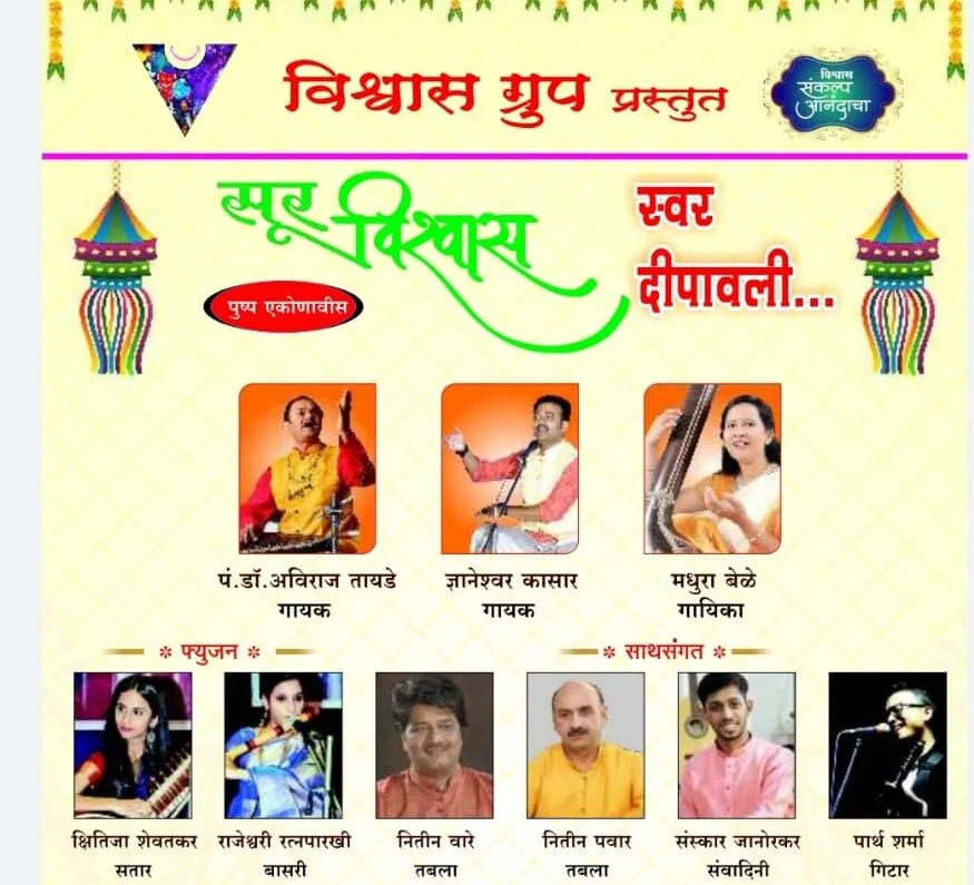 विश्वास ग्रुपतर्फे शनिवारी ‘स्वर दीपावली’ मैफिलीचे आयोजन